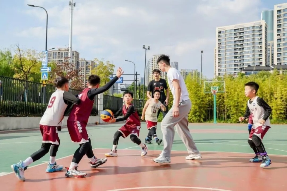 浙江稠州金租篮球俱乐部球员、U16男篮国家队队长李悦洲与队友唐榕泽,带着篮球来到孩子们中间,手把手教他们基础运球、胯下运球等动作:“屈膝、放低重心,眼看前方。”看着孩子们很快就上手做出了动作,李悦洲立刻竖起大拇指,还送上亲笔签名篮球。