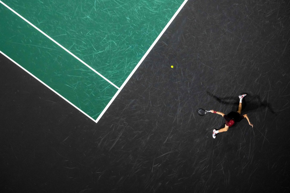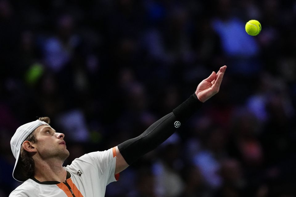 10月29日,贝格斯在比赛中发球。新华社/法新
